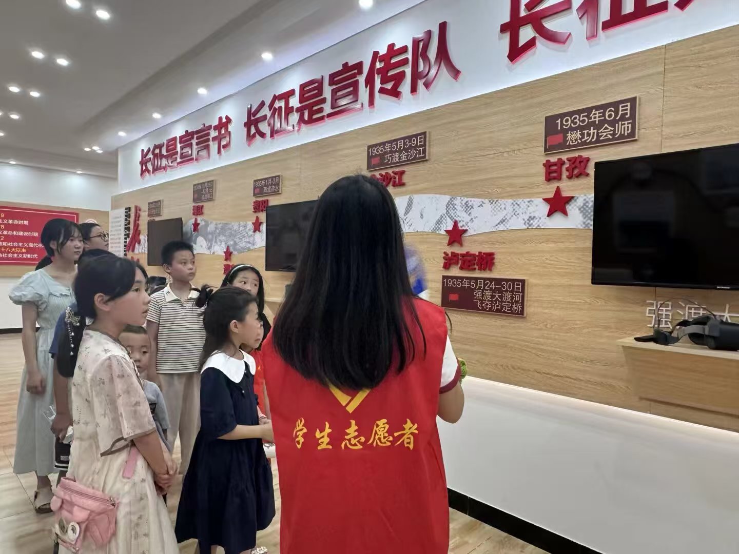 7日下午14时,实践团成员以“故事讲述 + 情景问答”的形式,带领青少年回溯党的光辉历程。当讲到刘胡兰“生的伟大,死的光荣” 的英勇事迹时,讲解员与现场的孩子们交流,在互动中悄然完成了一场红色基因的代际传递。此刻,科技赋能的研学场景与革命先辈的精神光芒相互映照,在幼小心灵里播撒的信仰种子,必将随着成长绽放出属于这个时代的创新之花。