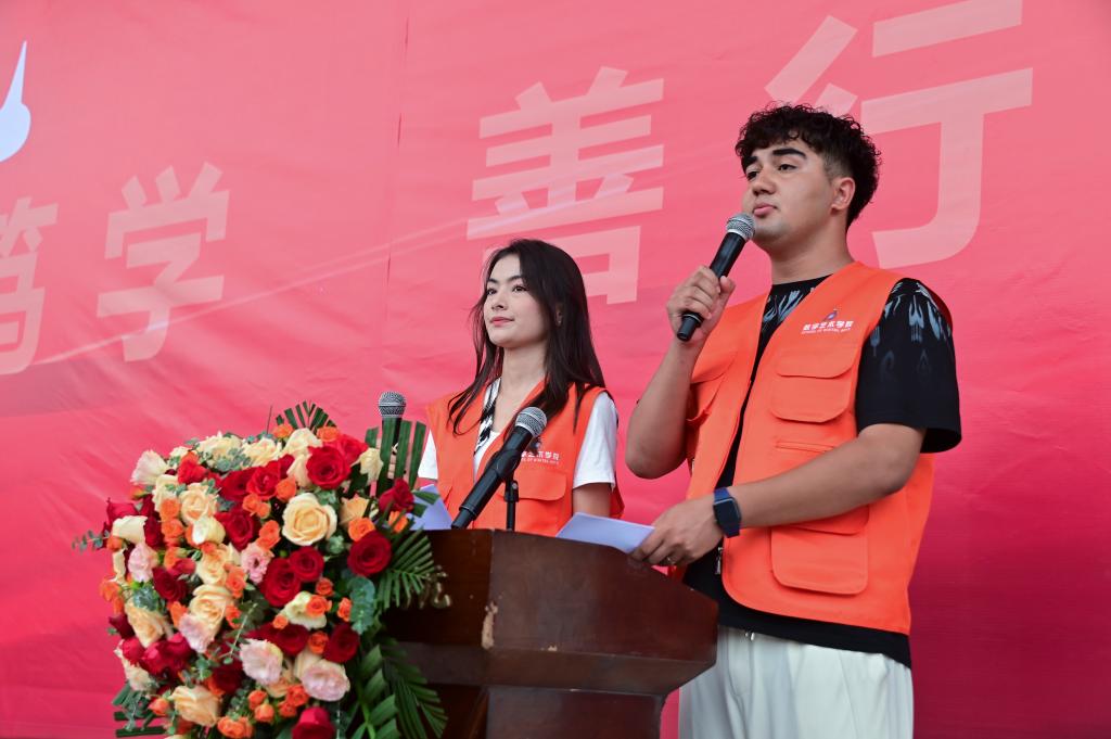 新生代表伊热·热扎克和穆拉迪力同学发言
