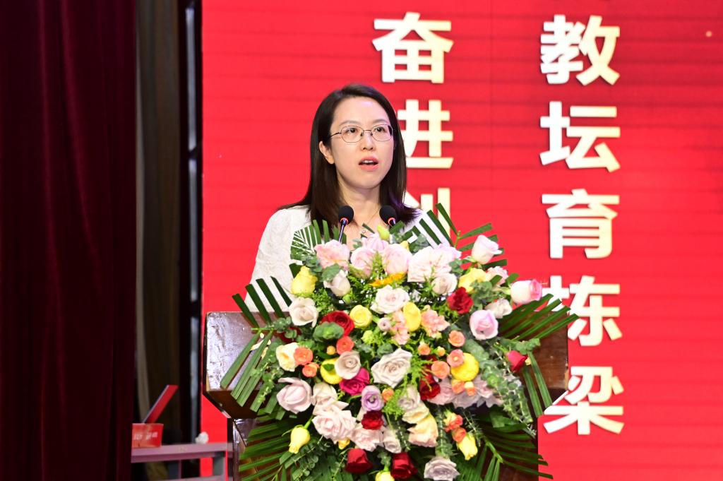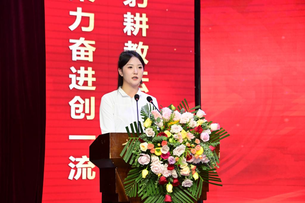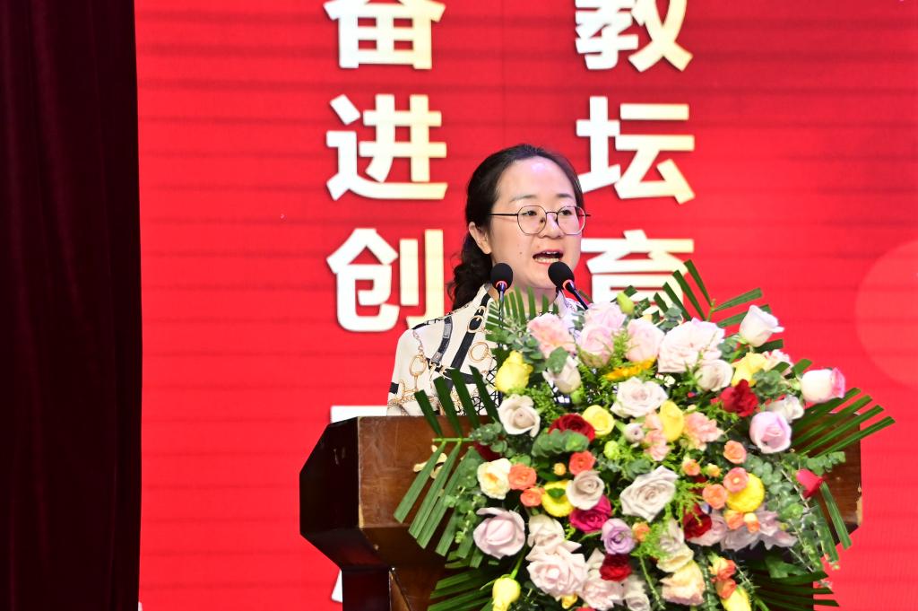 大会在庄严的国歌声中拉开帷幕。学生代表董如意同学用真挚的语言表达了对老师们辛勤培育的感激之情,并表示将不负韶华、勤奋学习,以优异成绩回报师恩。教师代表王雪琴老师交流发言,她分享了从教心得,表示将继续坚守教育初心、担当育人使命的决心,展现了新时代教师的风采与担当。