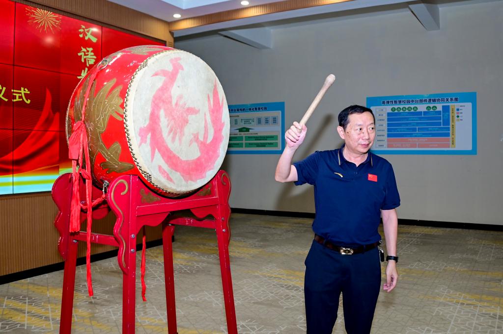 何光明书记为留学生击鼓鸣志