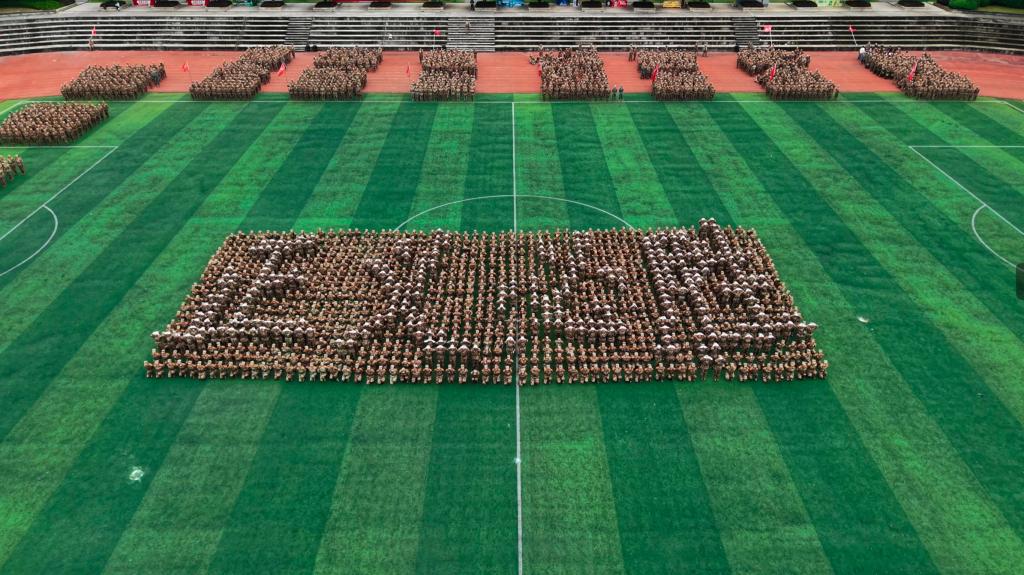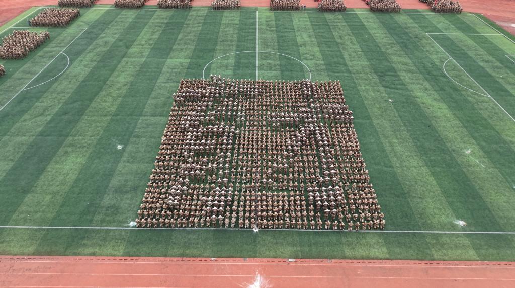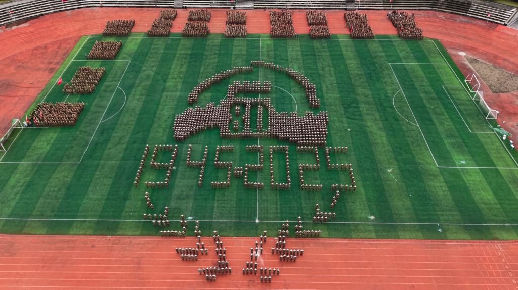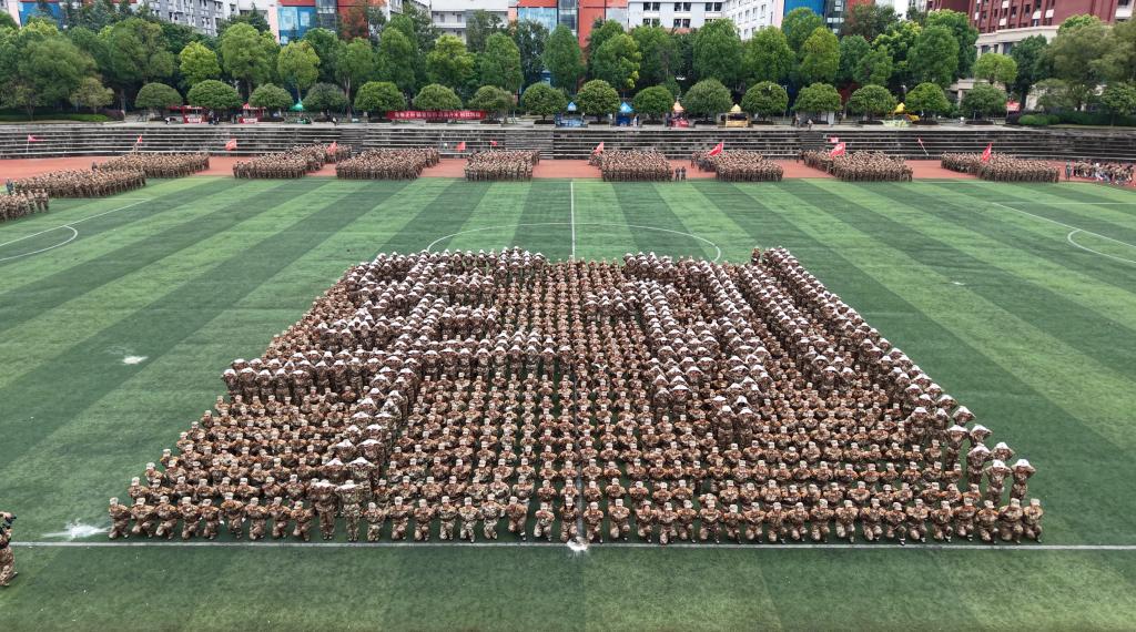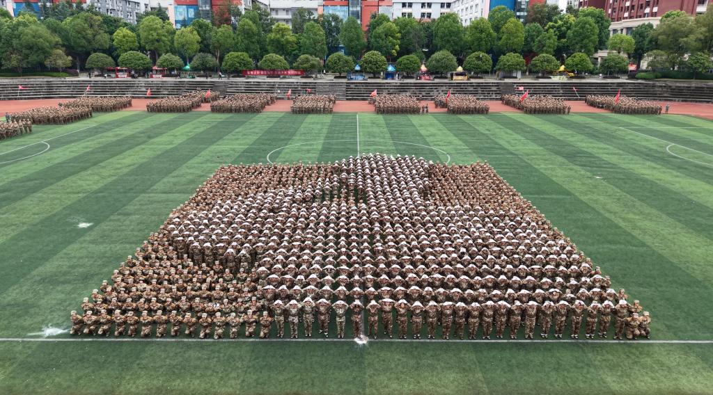 摆字方阵通过动静结合的方式用队形编排出“2025”“军训”“八一”“1984”“CCAT”“立德”“树人”“为党”“育才”“1931”“1937”“正义必胜”“和平必胜”“人民必胜”“80”“1945 - 2025”等字样。重建院学子以青春之名致敬历史,用军训热血新时代青年的责任与荣光。这场军训汇演,是历史与当下的对话,是信念与成长的共鸣。