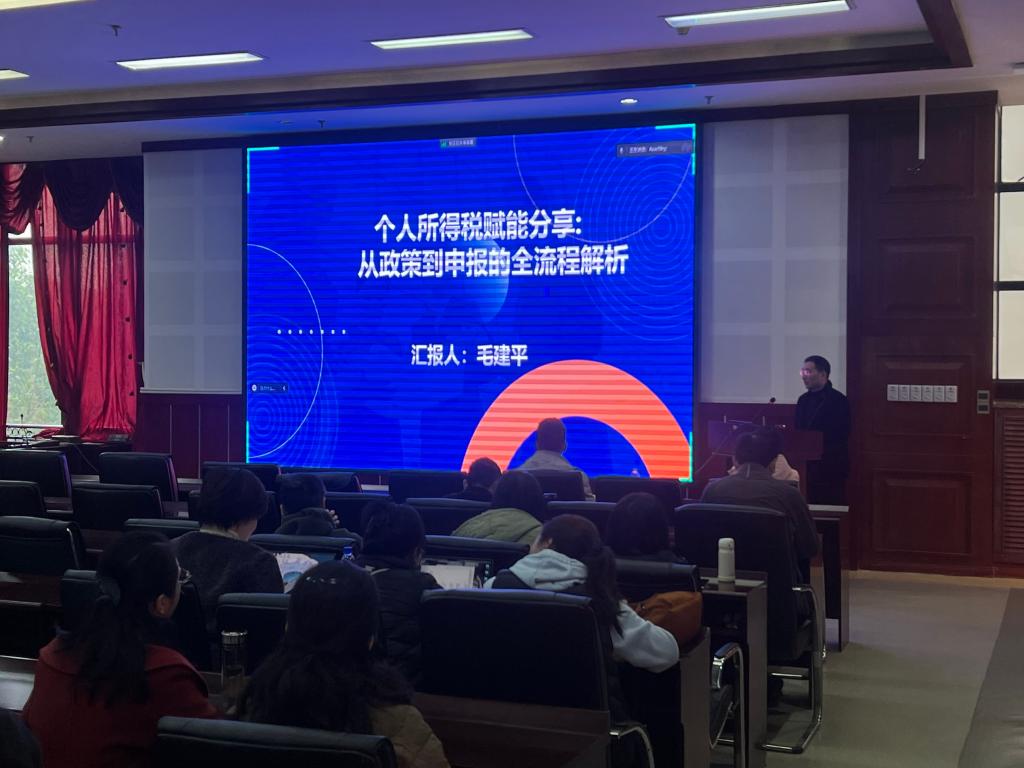 为深入实施“强师工程”,提升教职工的归属感与获得感,11月26日下午,学校在教学楼4305会议室举办“个人所得税赋能分享”专题培训。本次培训是学校加强教师服务保障体系建设的务实举措,旨在将国家政策红利精准转化为教职工的个人福利,助力教职工潜心教学科研。培训会由学校财务处处长毛建平同志主讲。