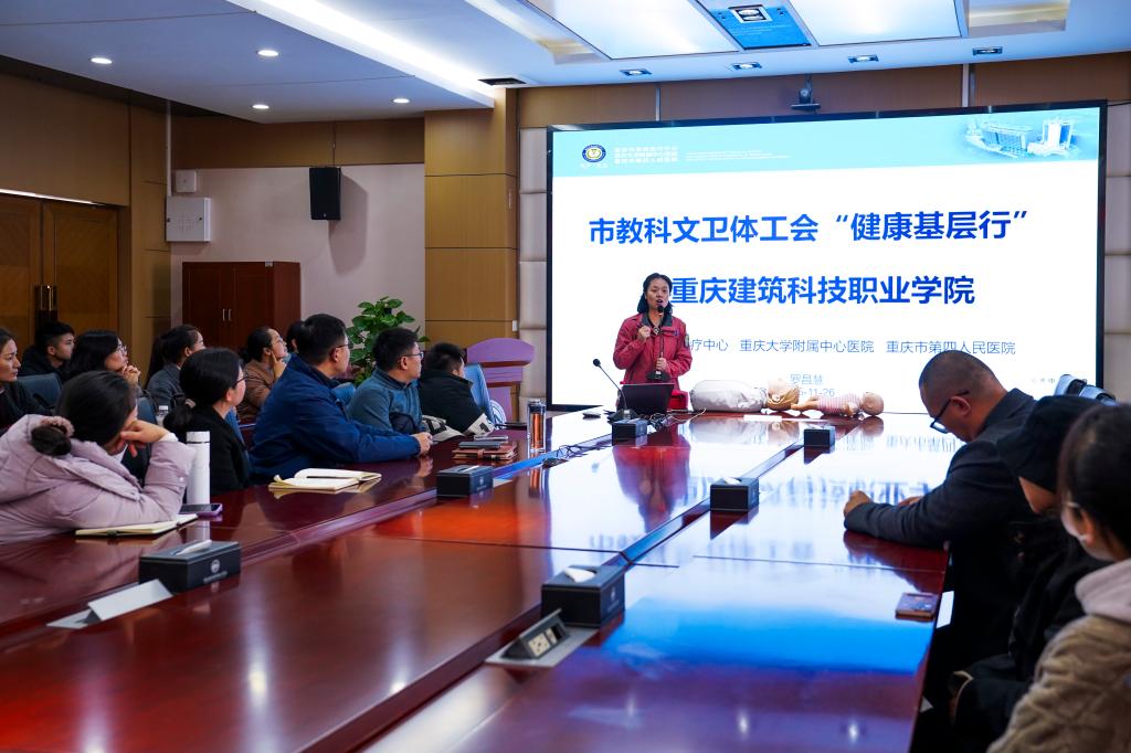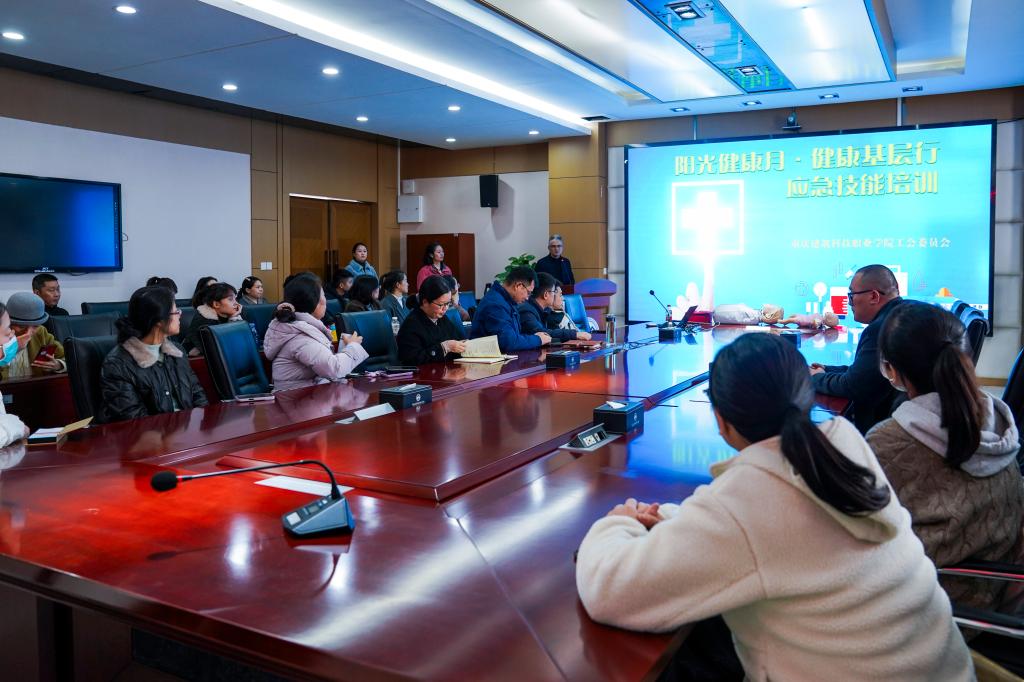 11月26日下午,校工会在六楼会议室举行第十届“健康基层行”应急技能培训,由重庆市急救医疗中心临床技能培训中心专职讲师、护师罗昌慧担任主讲。学校副书记、副校长李朝国与教职工代表们60余人参加培训。