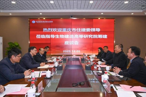 12月5日下午,重庆市住房和城乡建设委员会党组成员、副主任郭唐勇和重庆大学学术委员会主任刘汉龙教授一行来我校调研和指导学校生物建造高等研究院,新鸥鹏教育科技集团董事长杜积西和学校校长张进共同陪同。随后,市住建委领导与刘汉龙教授团队、学校领导在科技楼6楼召开了座谈交流会议。
