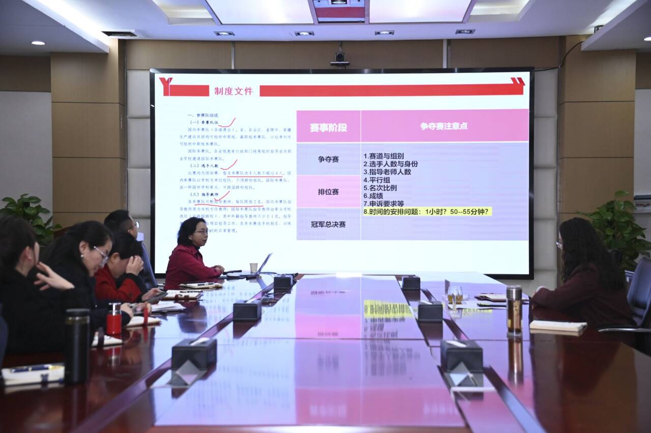 随后,王靖副校长就本年度备赛工作提出三点希望与建议:一是希望指导教师团队深化协作,精研赛制,精心设计参赛方案,并在训练中给予学生充分的人文关怀,促进学生全面发展;二是希望各二级学院加强统筹,整合资源,全力保障每个赛项都能突破重围,打造学院特色与专业品牌,于变局中开创高质量发展新局;三是要求相关职能处室充分发挥指挥与保障作用,全心全意服务备赛,全力协调解决各类困难。