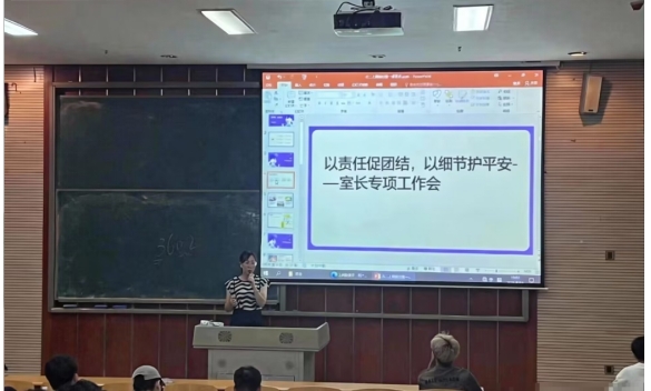 会议最后,辅导员作总结讲话,希望全体室长以此次会议为契机,强化责任意识、提升服务能力,把“细节”融入日常管理,用“责任”守护寝室平安,靠“团结”凝聚奋进力量,共同打造整洁有序、安全和谐、友爱互助的寝室环境。