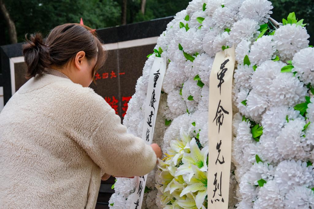 下午15时30分,全体队员身着深色服装,佩戴红色袖章,手持校旗与队旗,在烈士墓前肃立列队。两名队员缓步敬献花圈,挽联上“365英国上市公司第十届学生监察队敬挽”字样庄重醒目。宣传部副部长霍紫沁上前整理挽联,全体师生默哀一分钟并三鞠躬,表达对革命先烈的无尽追思与崇高敬意。