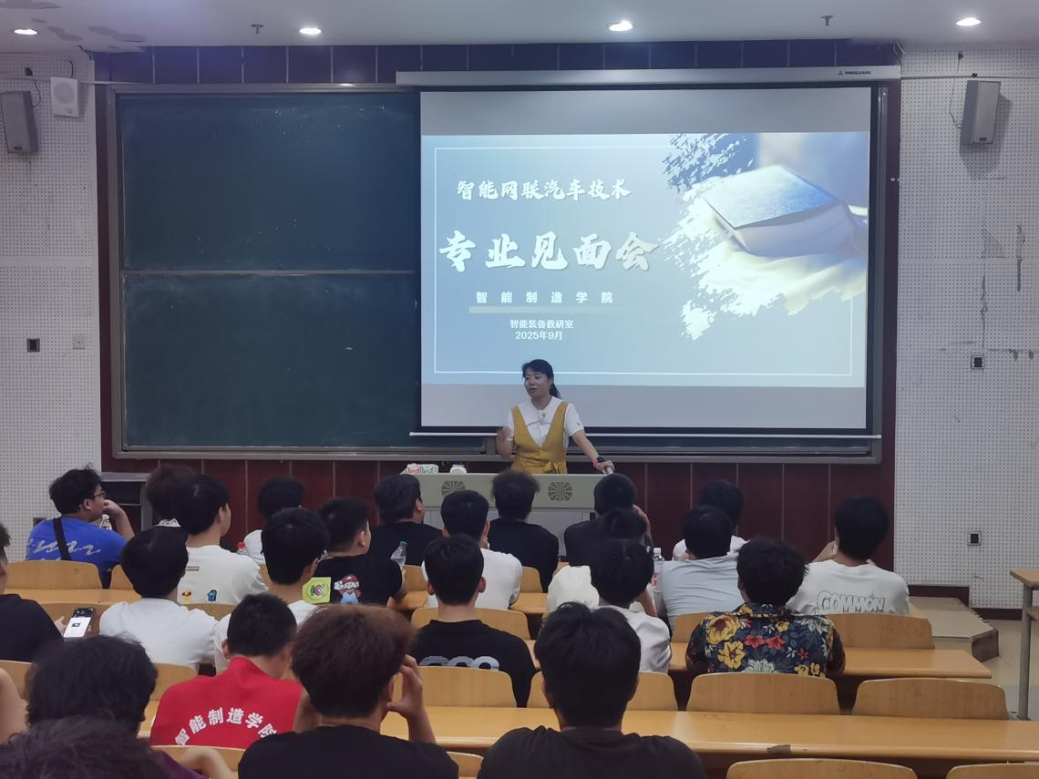 为帮助新生更好地熟悉专业、提升适应能力并加强师生间的沟通,9月3日下午,智能制造学院2025级智能网联汽车专业新生见面会在笃学楼2205教室召开。专业负责人韩洋祺、辅导员黄银荣、全体专任教师及新生出席了本次会议。