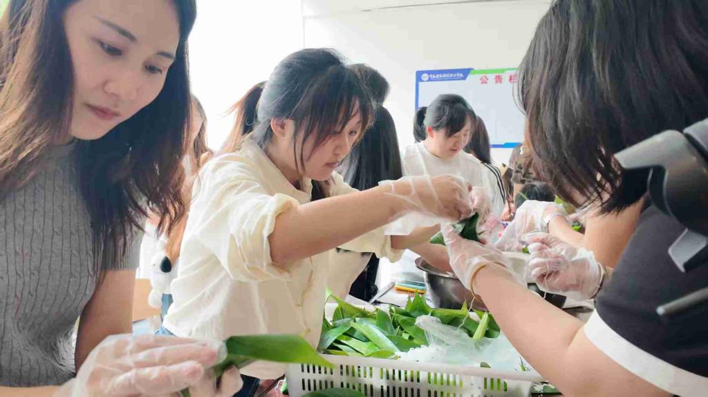 活动现场分为竞技比赛、文化体验和游戏挑战三大区域。竞技区“同舟共济”“气贯长虹”等团队游戏点燃了师生们的热情;文化体验区提供包粽子、制香囊等传统项目,参与者亲手制作节日礼物;游戏挑战区“粽钓江湖”“五毒退散”等创意游戏更是笑声不断。动漫社、茶艺社等学生社团也积极参与,为活动增添了青春活力。