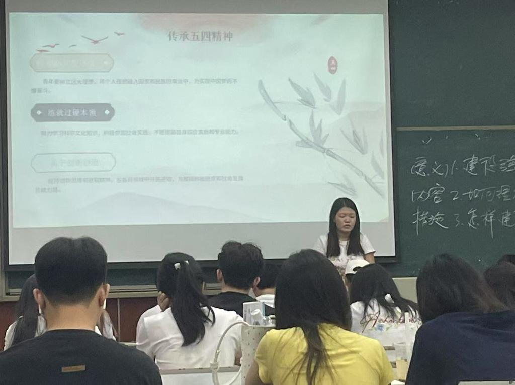 同学们结合自身实际,踊跃发言。有的同学分享了自己在学业上遇到困难时,如何以五四青年的奋斗精神激励自己克服困难、勇往直前;有的同学畅谈了未来的职业规划,表示要将个人理想融入国家发展大局,在自己的岗位上发光发热;还有的同学提出,要积极参与社会实践和志愿服务活动,用实际行动践行五四精神,为社会贡献自己的一份力量。