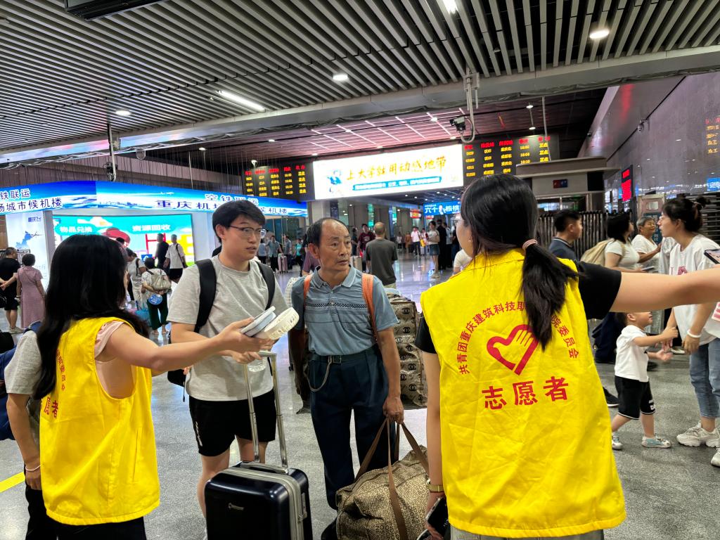 清晨6时30分,南门广场已集结完毕的志愿者队伍兵分七路,分别奔赴沙坪坝高铁站、大学城地铁站、陈家桥地铁站及重庆北、东、西站、西部客运站。他们举着醒目的校牌,协助新生搬运行李、指引乘车路线,将“校外第一站”的关怀延伸至城市各个角落。“从车站到学校全程有人接应,爸妈都觉得特别放心。”刚抵达校园的新生王同学说。