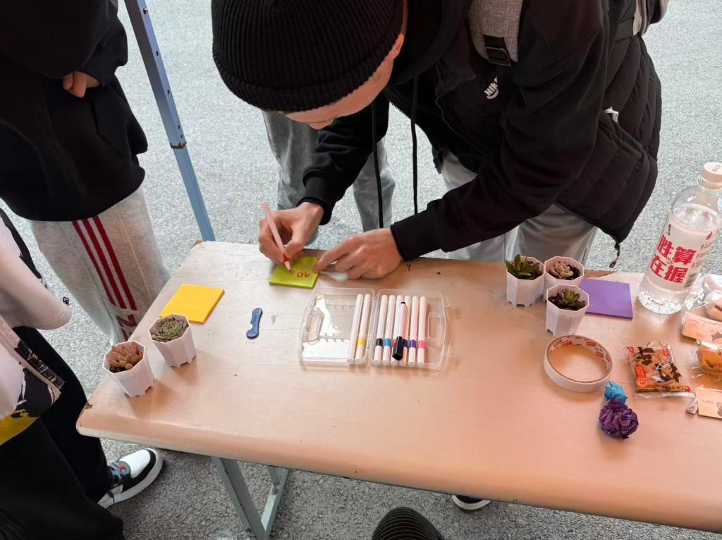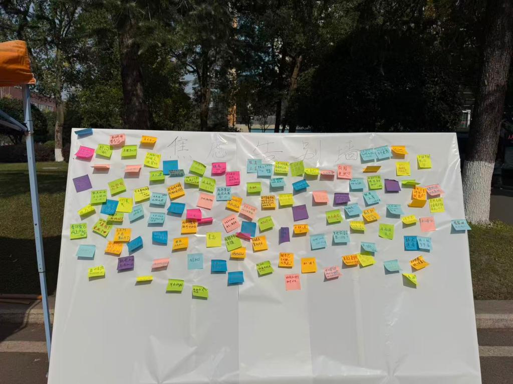 活动现场气氛热烈而温馨,尤为引人注目的是国际学生的积极参与。来自不同国家的学子们热情融入,或用略显生涩却真挚的中文,或用熟悉的母语,在便利贴上认真写下自己的小烦恼与对同窗的美好祝福。他们主动与中国学生亲切交流,分享跨文化背景下的情绪调节心得,用实际行动诠释了“心理健康关怀无国界”的理念,为本次活动增添了亮丽的国际化色彩,也让“向阳生长”的主题更加鲜活——无论来自何方,都能在同伴互助中汲取前行力量。