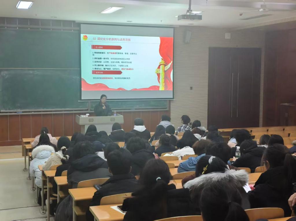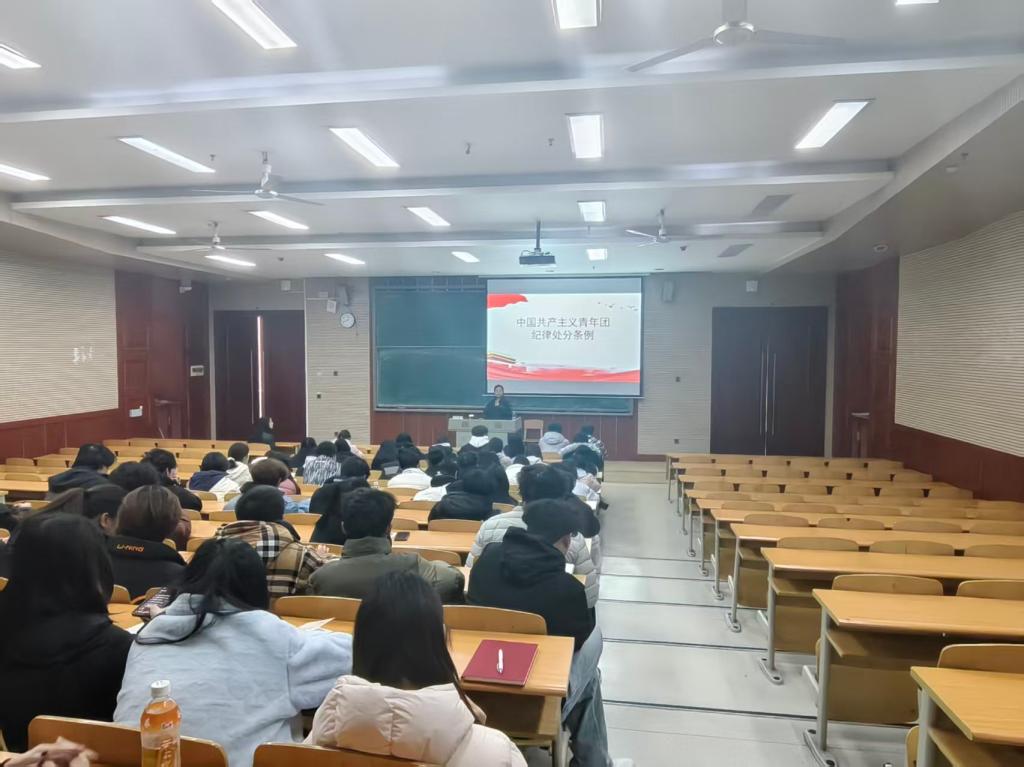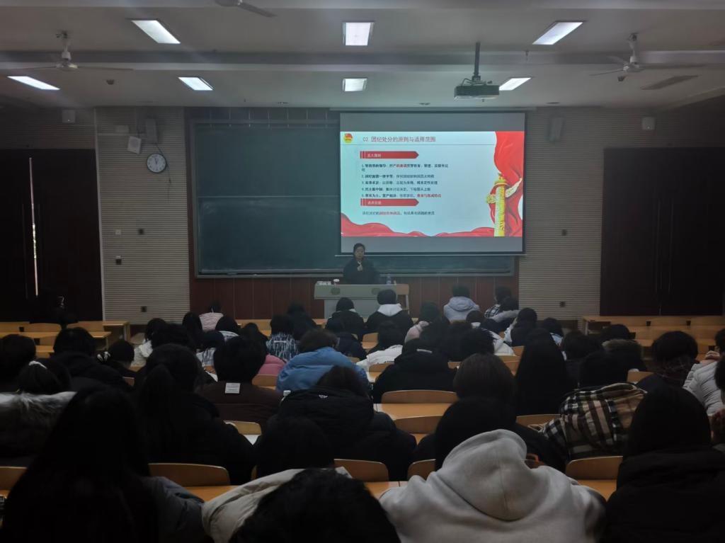 为进一步加强团干部队伍建设,提升团干部的纪律意识和履职能力,校团委于12月9日中午12:40在笃学楼1305教室成功举办团干部培训第四讲。本次培训特邀校团委张馨月老师担任主讲,围绕《中国共产主义青年团纪律处分条例》(以下简称《条例》)进行专题授课,各级学院团干部积极参加了本次培训。