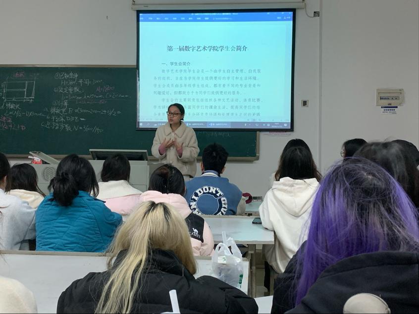 大会伊始,如领航之灯般的学工办主任、团总支书记陈清清,带着温暖而坚定的笑容,深情回顾了往昔学生工作中那些璀璨如星的成果与珍贵似金的经验。每一个成就都似一座丰碑,铭刻着大家共同的努力;每一次经验都如一盏明灯,照亮前行的道路。话语间,对干事们的欢迎之情溢于言表,那是对新鲜血液的期待,是对未来无限可能的憧憬,这正应了李白的那句“天生我材必有用”,每一位部长、干事们都将在数字艺术学院团总支学生会中找到自己的价值。