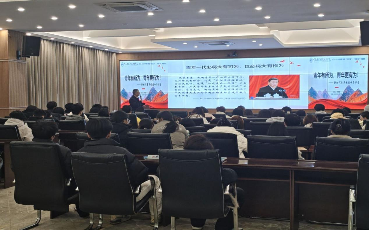 讲座最后,李朝国副校长强调,新时代青年要 “更有为”,需筑牢思想根基,将个人理想融入国家发展;锤炼专业本领,在学践结合中成长为复合型人才,在攻坚克难中书写青春华章。新时代也为青年提供了广阔舞台,青年一代正以青春为笔、奋斗为墨,在民族复兴的伟大实践中实现青春梦想。