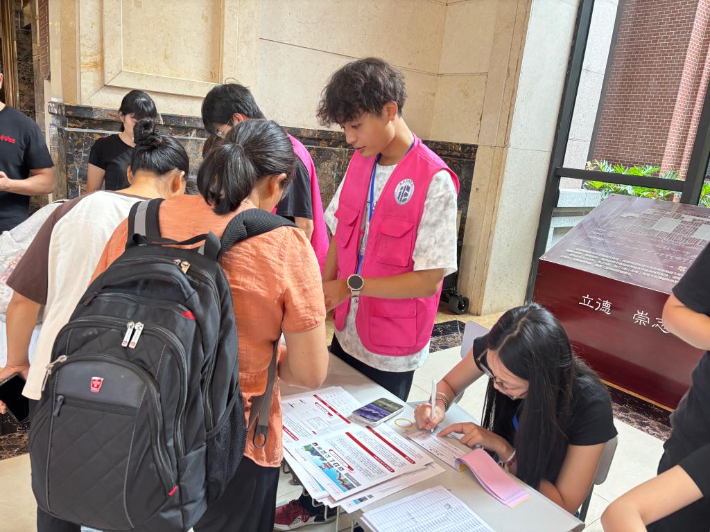 清晨7时许,学院迎新点已布置完毕,红色欢迎横幅随风舒展,“数字工程学院欢迎你”的标语格外醒目。由四十余名学长学姐组成的迎新志愿服务队早早到位,他们身着统一志愿马甲,分散在学校大门、报到大厅等关键点位。看到拖着行李箱的新生,志愿者们上前接过行李,一边帮着搬运,一边耐心指引:“同学,报到大厅往这边走,先核对信息再办理入住,我陪你过去。”从校门口到报到点,再到宿舍楼,志愿者们往返穿梭,汗水浸湿了衣衫却依旧笑容满面,用行动传递着学院的温暖。
