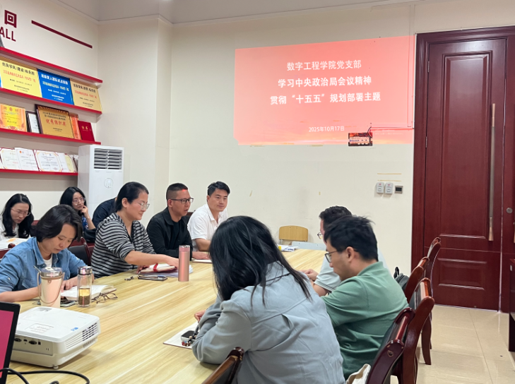 会上,数字工程学院党支部聚焦中共中央政治局9月29日会议精神,组织支部党员深入学习《中共中央关于制定国民经济和社会发展第十五个五年规划的建议》稿相关内容。深刻领会党中央对 “十五五” 时期发展形势的科学判断、战略谋划及基本原则,尤其围绕坚持党的全面领导、人民至上、高质量发展等关键要点,进一步统一思想认识与行动方向。