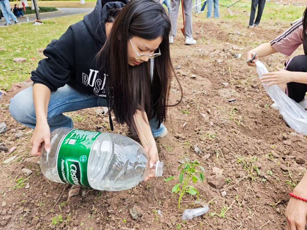 植树活动在学院劳动教育实践基地举行。同学们手持锄头、铲子,翻土整地、播撒种子、浇水施肥,每个环节都认真细致、有条不紊。不少同学初次体验农耕劳作,虽动作生疏却热情高涨,现场气氛热烈融洽。