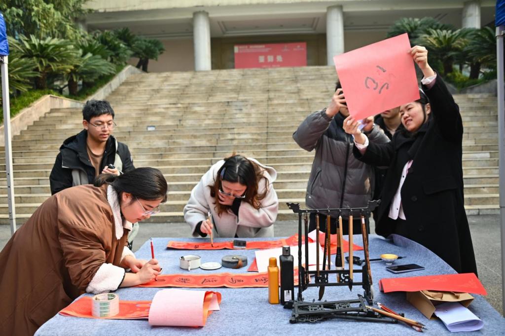 “于浓墨红纸间触摸书法艺术的温度,浸润的是文化根脉,传递的是新岁祈盼。”本次活动不仅让师生们在忙碌的学期末放松了身心,更是一次生动的美育实践。它让抽象的传统文化以可感、可触、可玩的形式融入校园日常,有效涵养了师生的审美意趣与文化认同感,增强了民族自豪感。
