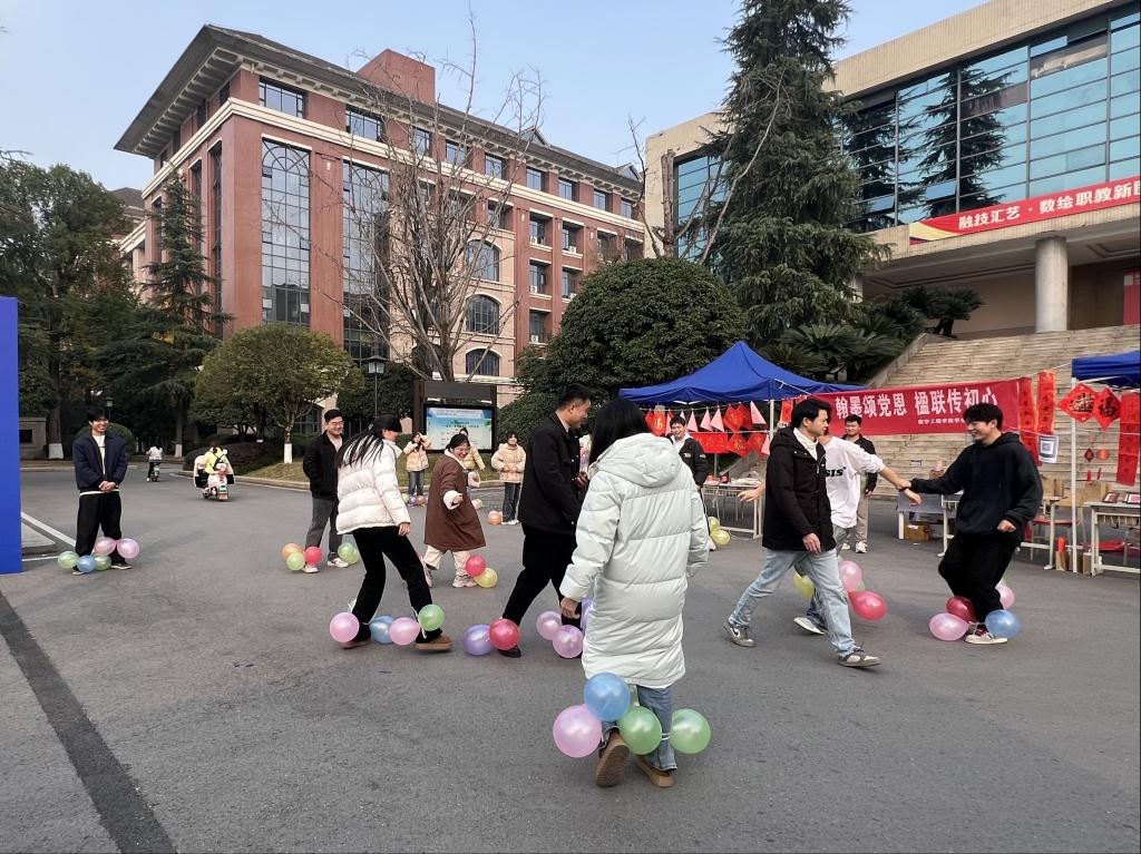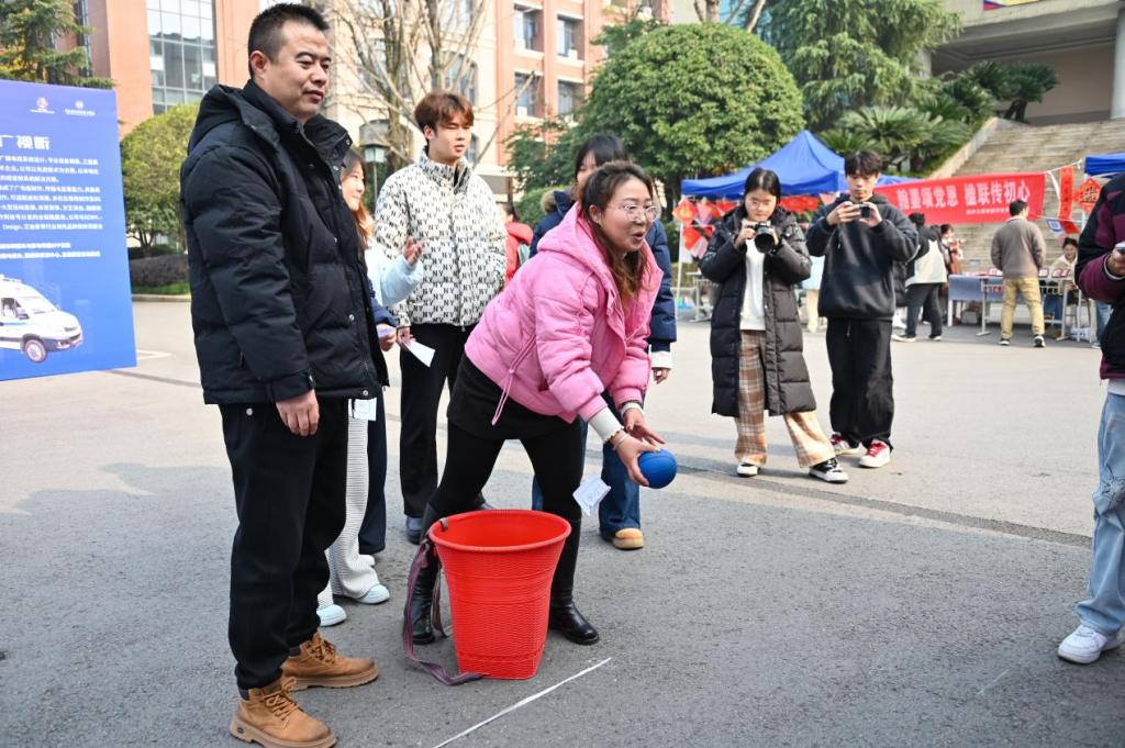 本次活动巧妙地将传统民俗体验与趣味游戏相结合,设置了“党史答题”、“欢乐踩气球”、“纸杯叠叠乐”、“趣味投壶”、“合力筑塔”、“记忆作画”六个闯关环节。师生们通过参与游戏收集奖票,既可兑换由书法爱好者现场挥毫书写的新春对联和“福”字,也能亲自上阵,在志愿者的指导下体验笔墨丹青的乐趣。活动现场欢声笑语不断,“党史答题”中,师生们围绕党的理论知识,进行回答,在活动中深化了对党的理论的理解。“合力筑塔”游戏中,同学们通力协作,展现了良好的团队精神。